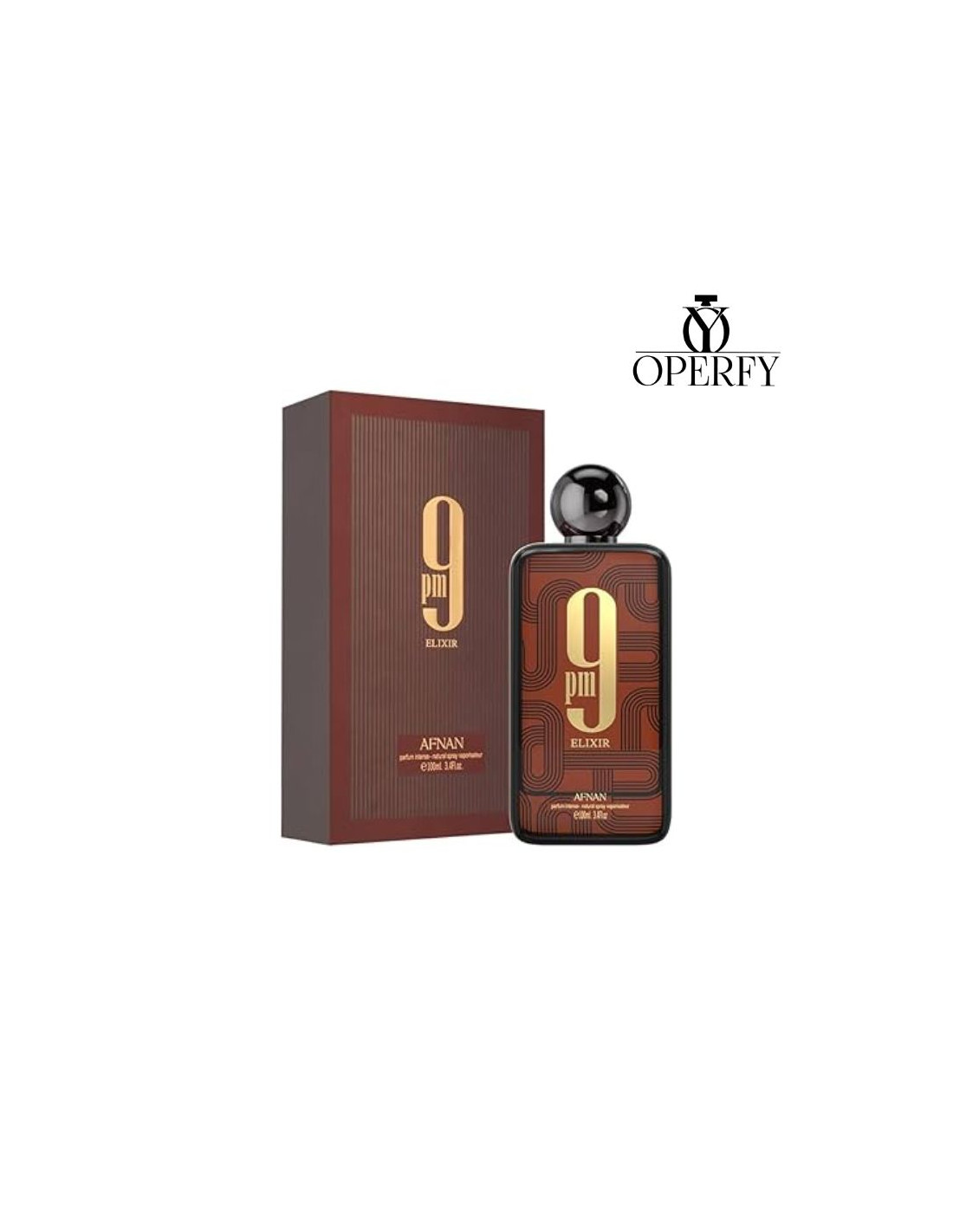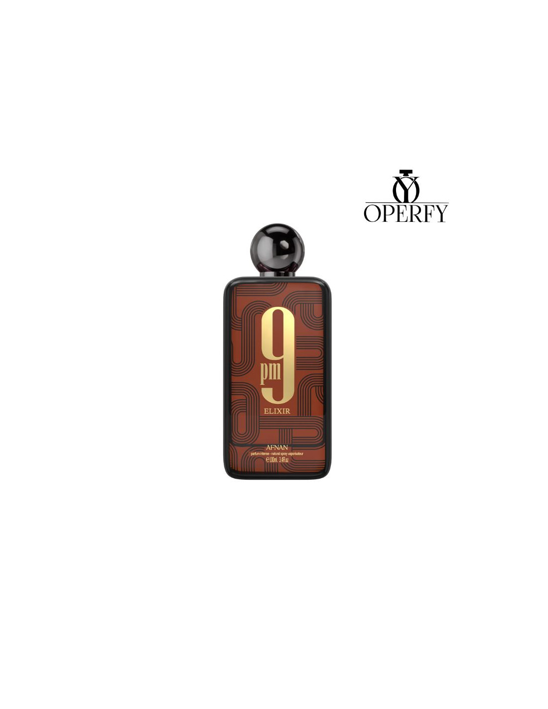 Afnan 9PM Elixir es un perfume oriental especiado unisex con notas de nuez moscada, cardamomo y elemi en salida; pimento, lavandin y cuero en corazón; y ciste, labdanum, patchouli y vainilla en base. Ideal para noches frías, ofrece calidez adictiva, proyección beast mode y longevidad de 12+ horas, perfecto para citas y eventos invernales.
