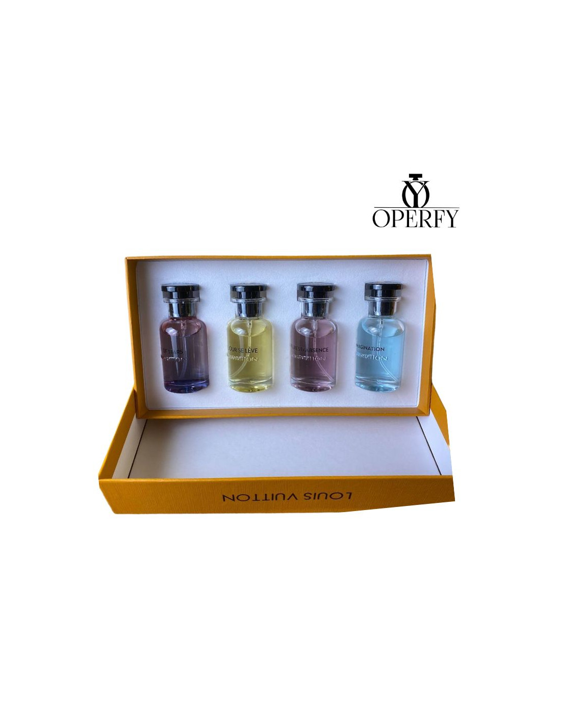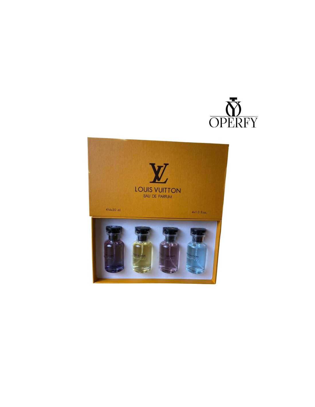 Set de perfumes Louis Vuitton que incluye 4 fragancias en presentación mini, ideales para descubrir diferentes estilos de la maison. El estuche reúne aromas frescos, florales, cítricos y elegantes, perfectos para variar según la ocasión. Su formato es ideal para viajes, colección o como regalo premium.